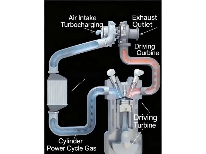 Turbocharger menggunakan gas ekzos untuk berputar turbin.
